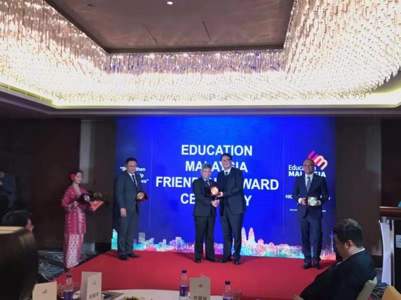 马来西亚驻华大使诺希尔万在致欢迎辞时表示,马来西亚以高水平的高等教育而闻名,目前该国吸引了来自150多个国家的数十万名国际学生前往学习,包括中国厦门大学在内的11所国际大学在马来西亚开设了分校。这些都说明,马来西亚正在为留学生创造一个先进的国际教育生态圈。马来西亚希望与中国各知名高校加强在高等教育领域的交流与合作。中国教育国际交流协会副秘书长余有根首先祝贺了马来西亚以主宾国的身份于今年11月成功参与了2020年中国国际教育年会(CACIE),成为第一个获此殊荣的东盟国家,并获得了出色的成绩。他透露在年会期间,中马双方还合作举办了在线研讨会,探讨了疫情影响下中马如何调整合作战略,深化务实合作等内容。马来西亚驻华大使诺希尔万在会上对上述与会单位表示感谢,并为各单位颁发了首次设立的“马来西亚高等教育友谊奖”。我校校长助理林卫民代表学校接受颁奖。