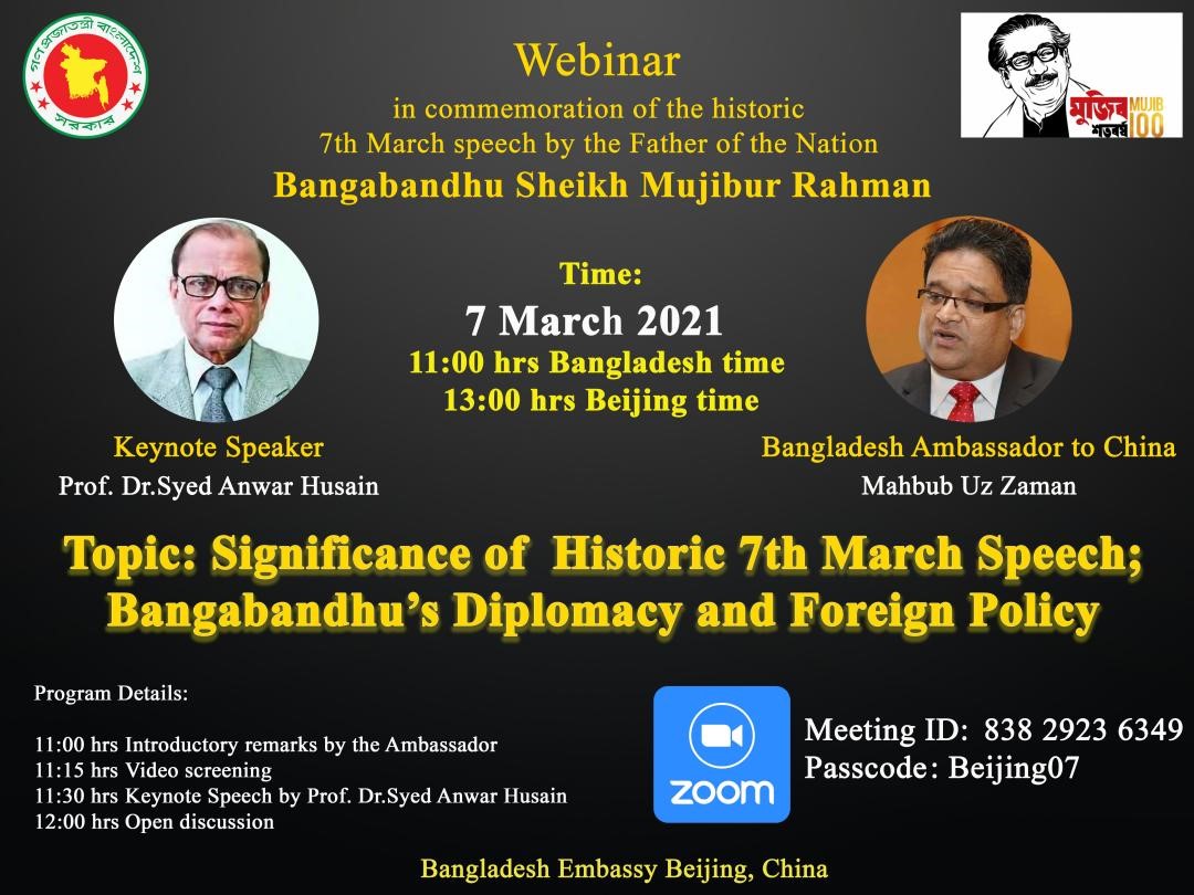 孟加拉语专业师生受邀参加孟加拉国驻华大使馆举办的纪念孟加拉国国父“3月7日历史性讲话”线上活动暨研讨会。