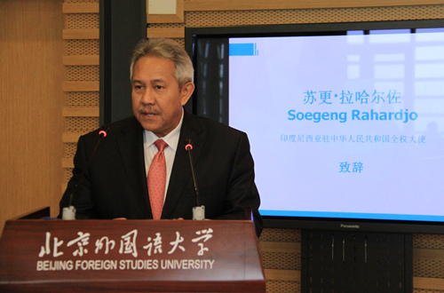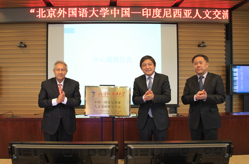 “中国-印度尼西亚人文交流研究中心成立仪式暨一带一路建设背景下的中印尼人文交流与智库建设学术研讨会”在图书馆举行。印度尼西亚驻华大使苏更•拉哈尔佐、教育部国际司副司长于继海、我校校长彭龙出席成立仪式并讲话,成立仪式由副校长贾文键主持。
