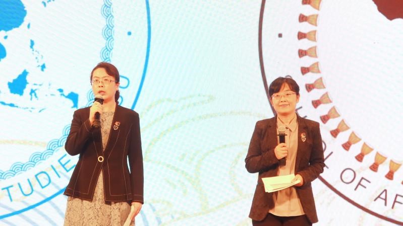 教师代表、越南语专业教师钟珊博士,非洲学院学生代表、2020级阿姆哈拉语专业本科生于钧同,国产视频