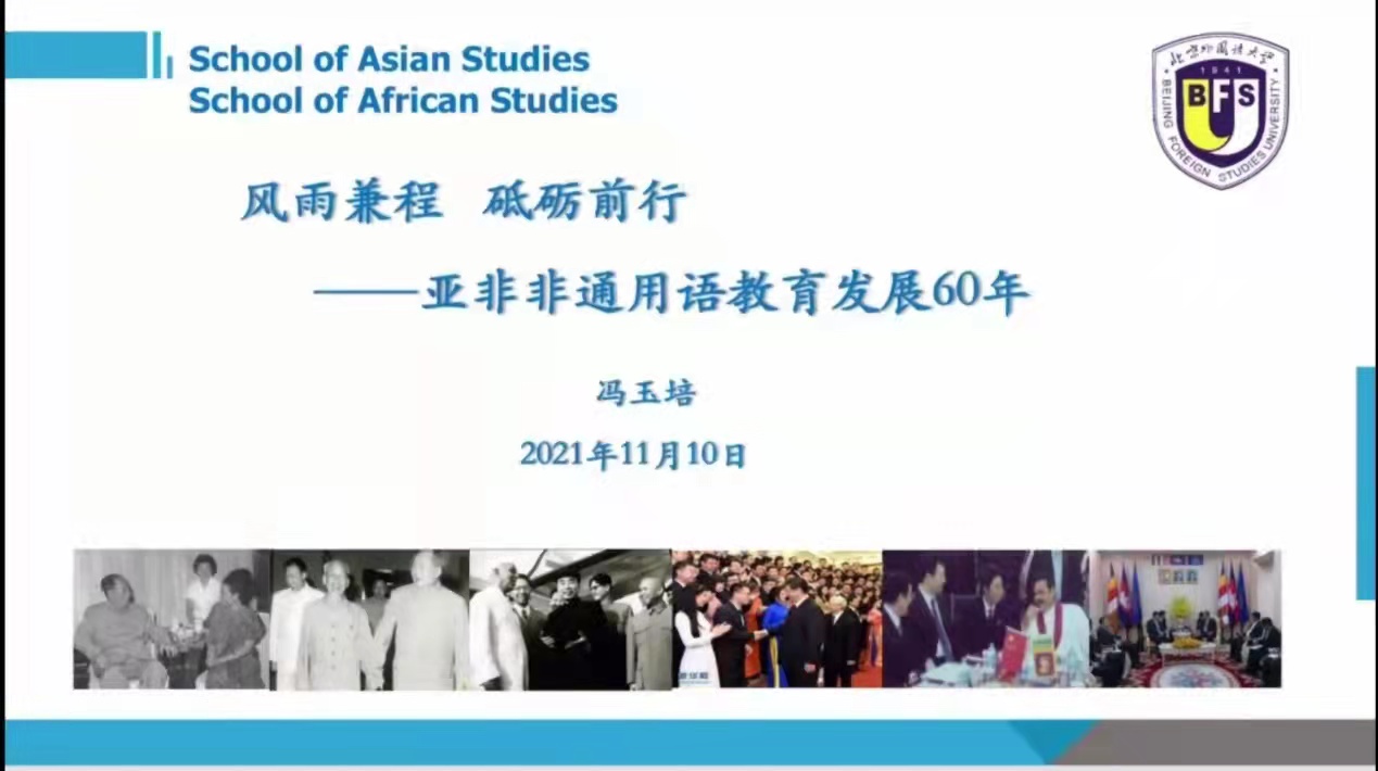冯玉培教授首先介绍了亚非非通用语的发展历史。亚非60年的光辉历程可分为三个阶段,即1961年-1965年 “艰苦创业、不辱使命”阶段;1966年至上世纪90年代末“艰难探索、砥砺前行”阶段和21世纪初至今的 “沐浴春风、谱写新篇”阶段。冯玉培教授用生动的语言、典型的事例讲述了北外亚非非通用语的发展历程及取得的成就。