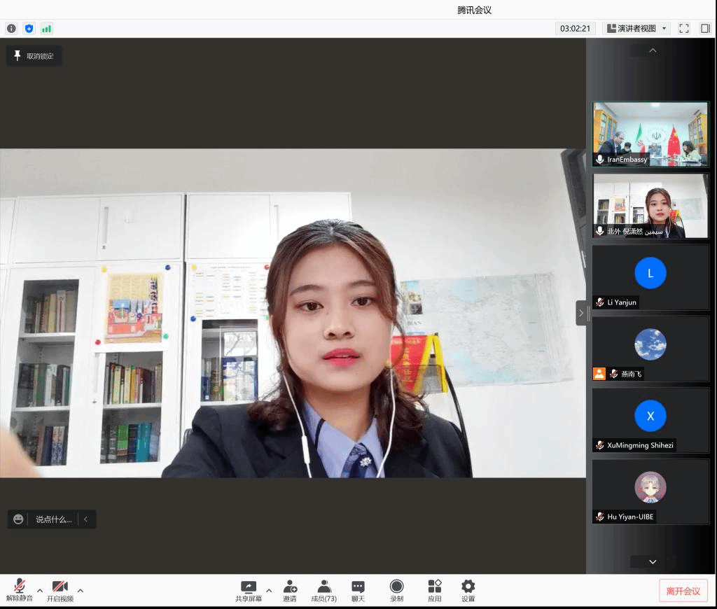 3月12日上午,由伊朗驻华大使馆主办的全国波斯语演讲比赛在线上举行。本次比赛分为演讲、散文朗诵和诗歌朗诵三组,旨在激发中国学生学习波斯语的兴趣,促进中伊文化交流。