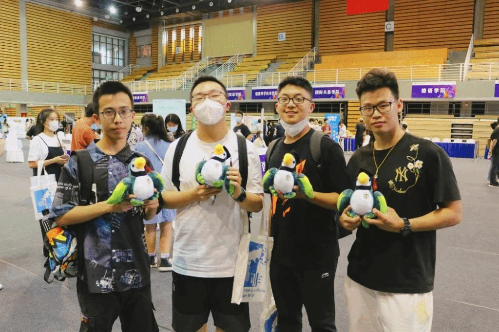 、非洲学院团总支学生会成员与辅导员郝雪妮的引导下,新生们在体育馆有序进行了报到,并领取了新生大礼包。完成报到后,新生们与北外吉祥物“鹦鹉学长”以及亚非原创纪念框进行了合影留念。