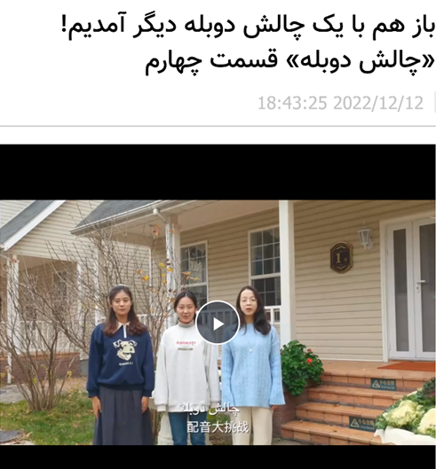 2022年12月12日,中央广播电视总台亚洲非洲地区语言节目中心波斯语部发布第四期“配音大挑战”节目视频。国产视频