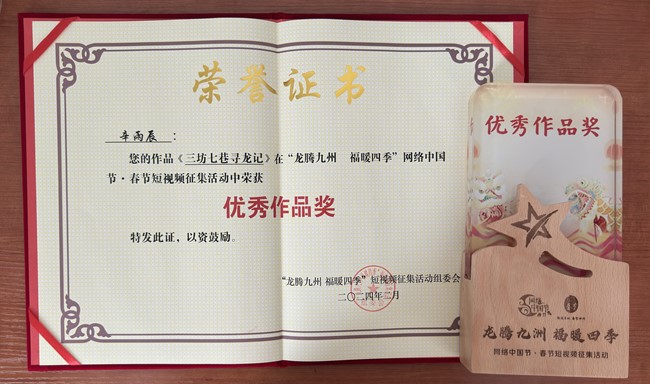2022级柬埔寨语专业本科生辛雨辰的作品《三坊七巷寻龙记》荣获“优秀作品奖”,从全国上万件作品中脱颖而出。