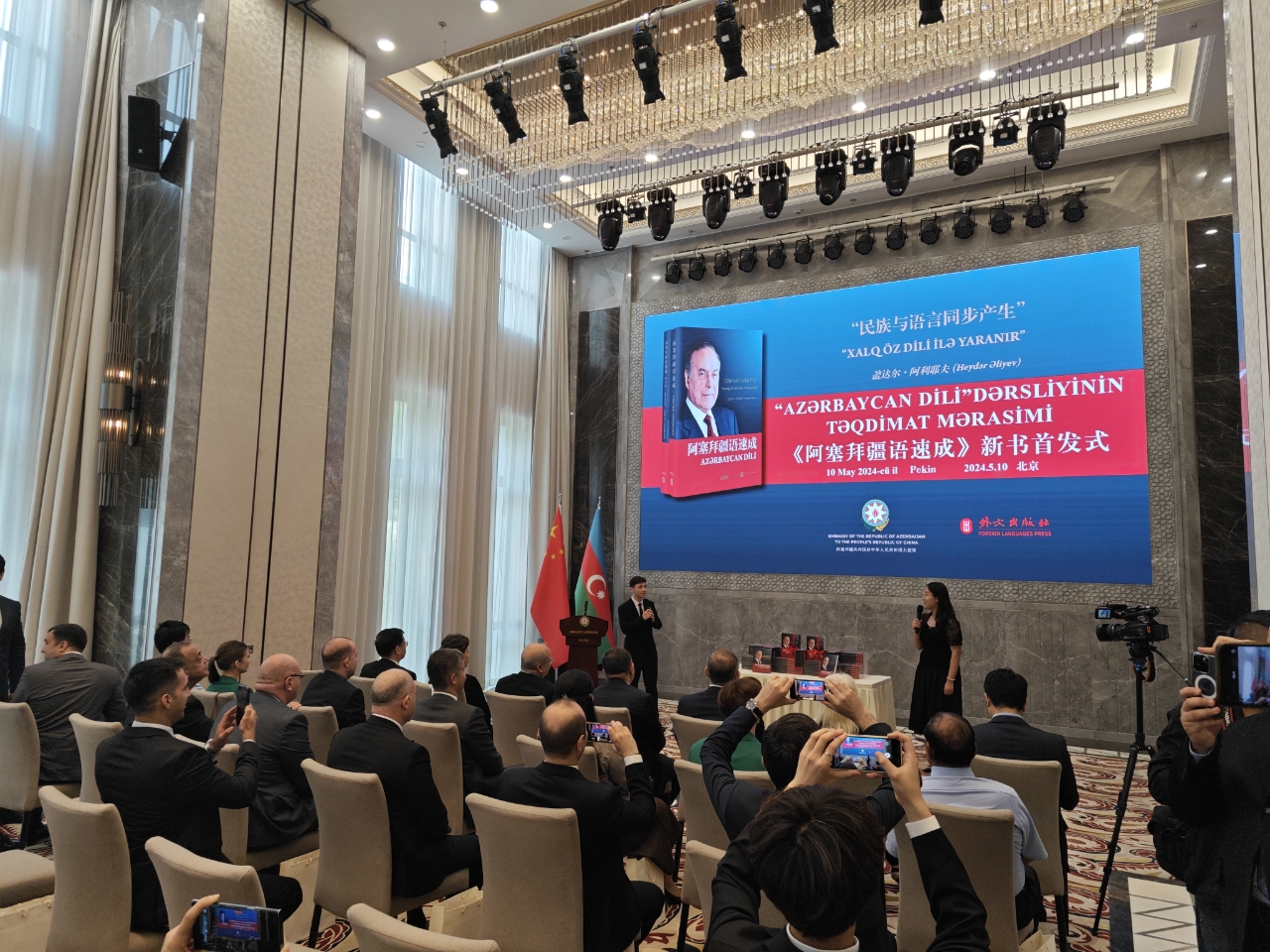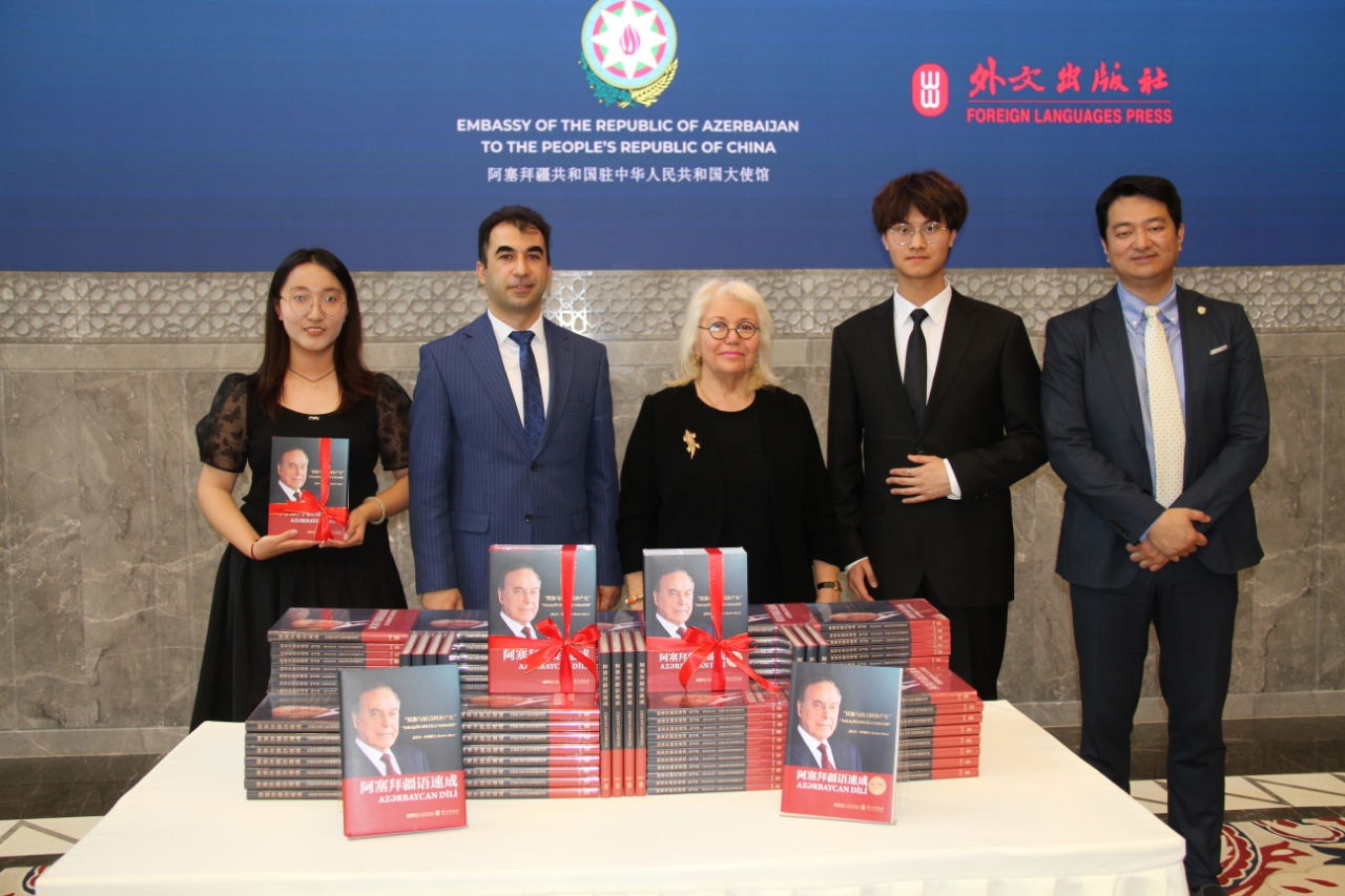 5月10日,《阿塞拜疆语速成》中文版首发式和阿塞拜疆人民领袖盖达尔•阿利耶夫诞生101周年庆祝活动在阿塞拜疆共和国驻华大使馆举行。阿塞拜疆驻华大使布尼亚德·胡塞诺夫、中国外文局副总编辑陈实、外文出版社社长胡开敏,该书作者伊拉纳·阿利耶娃、国产视频