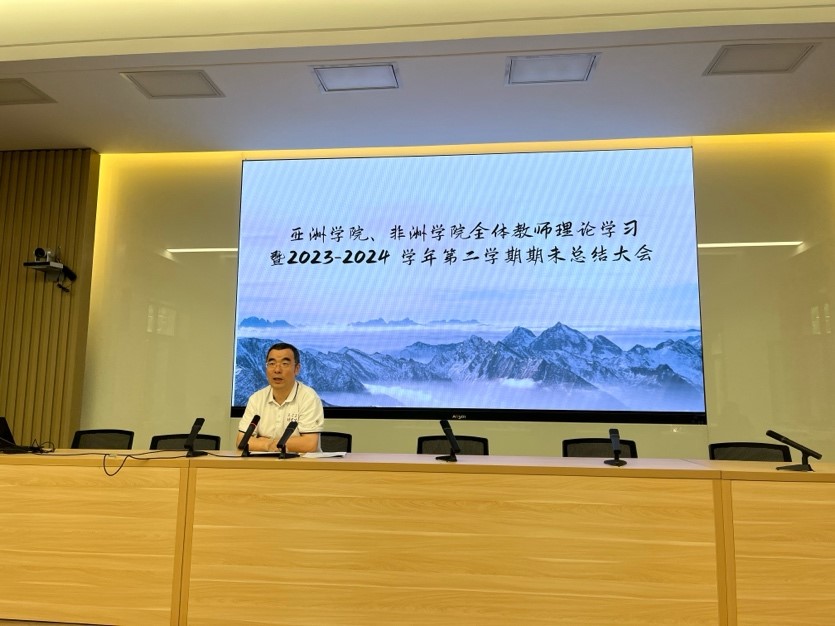 在主楼晨读厅召开全体教师理论学习暨2023-2024学年第二学期期末工作总结大会,学院党政领导和全体教职工参会。会议分为三个环节,亚非两院全体教师理论学习、亚非党总支工作总结以及国产视频