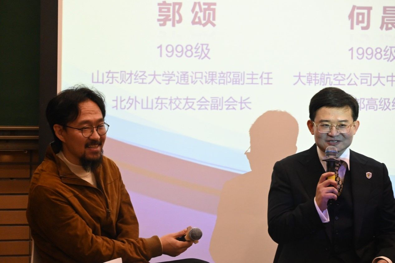 郭颂分享了自己在文学教育事业笃行二十余年,在文学、逻辑学等领域广泛涉猎的经历,使同学们受益匪浅;何晨讲述了自己在大韩航空深耕二十年的经历和感悟,为在校生毕业后进入韩企提供了宝贵建议和指导;黄婉迪讲述了自己跨国跨行业主动求变、主动转型的历程,并强调把过往经历凝聚成个人核心竞争力的重要性;管施霖分享了自己坚定追求梦想、跨至互联网行业的经历,激励同学们在选定的方向上坚定前行;赵洁讲述了自己跨越部委、央企、外企的多维职业历程,并结合自身对外语专业优势的洞见,勉励同学们以语言专业为跳板,将人生之路走得更宽更广。