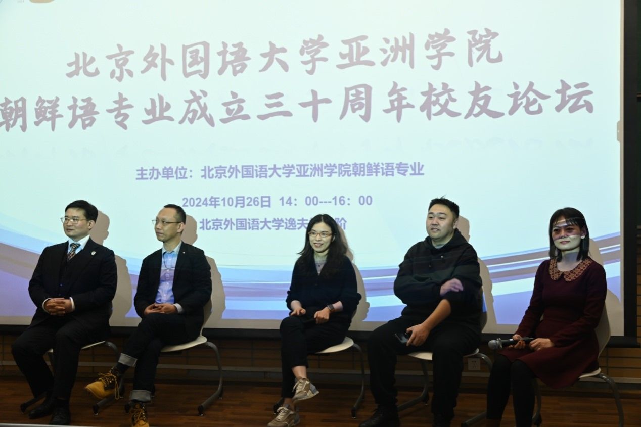 朝鲜语专业成立三十周年系列活动暨校友论坛在逸夫楼一阶圆满召开。此次论坛旨在充分发挥朝鲜语专业校友的榜样引领作用,为在校学生提供与优秀校友交流学习的平台,特邀十位优秀校友就学术探索与职业发展经历进行分享。论坛由朝鲜语专业任翔老师、周晓蕾老师主持,历届校友、在校本科生与研究生共百余人参加。