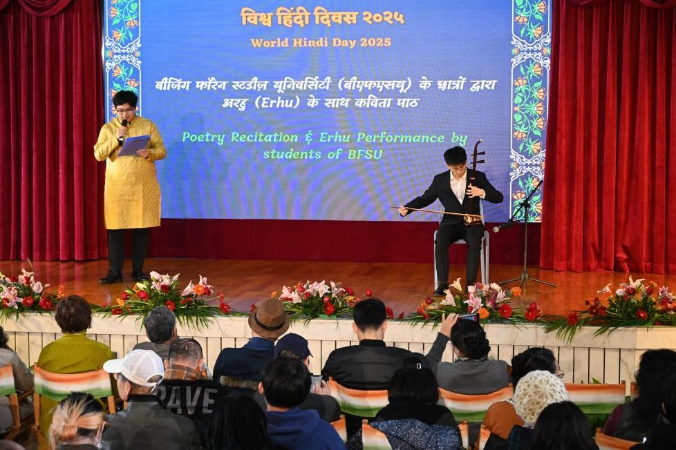 印地语专业李明灿、杨熙政两名同学表演诗朗诵与二胡伴奏