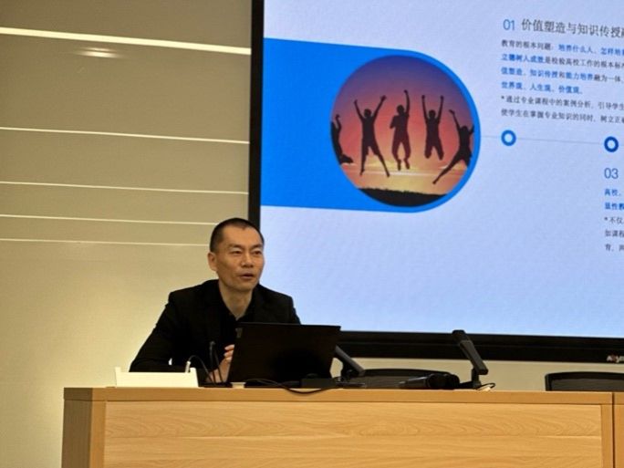 副院长汪波老师为两院老师详细解读了《高等学校课程思政建设指导纲要》。他从课程思政的顶层设计、实践路径和质量评价等多个维度,系统阐述了新时代高校课程思政建设的重要意义。汪波副院长特别强调,要将思政元素有机融入专业课程教学,实现知识传授与价值引领的统一,切实提升育人实效。