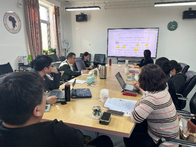 非洲学院党总支理论学习中心组在主楼344会议室开展《教育强国建设规划纲要(2024-2035)》专题学习活动。会议由党总支书记许晔主持,全体中心组成员参加。
