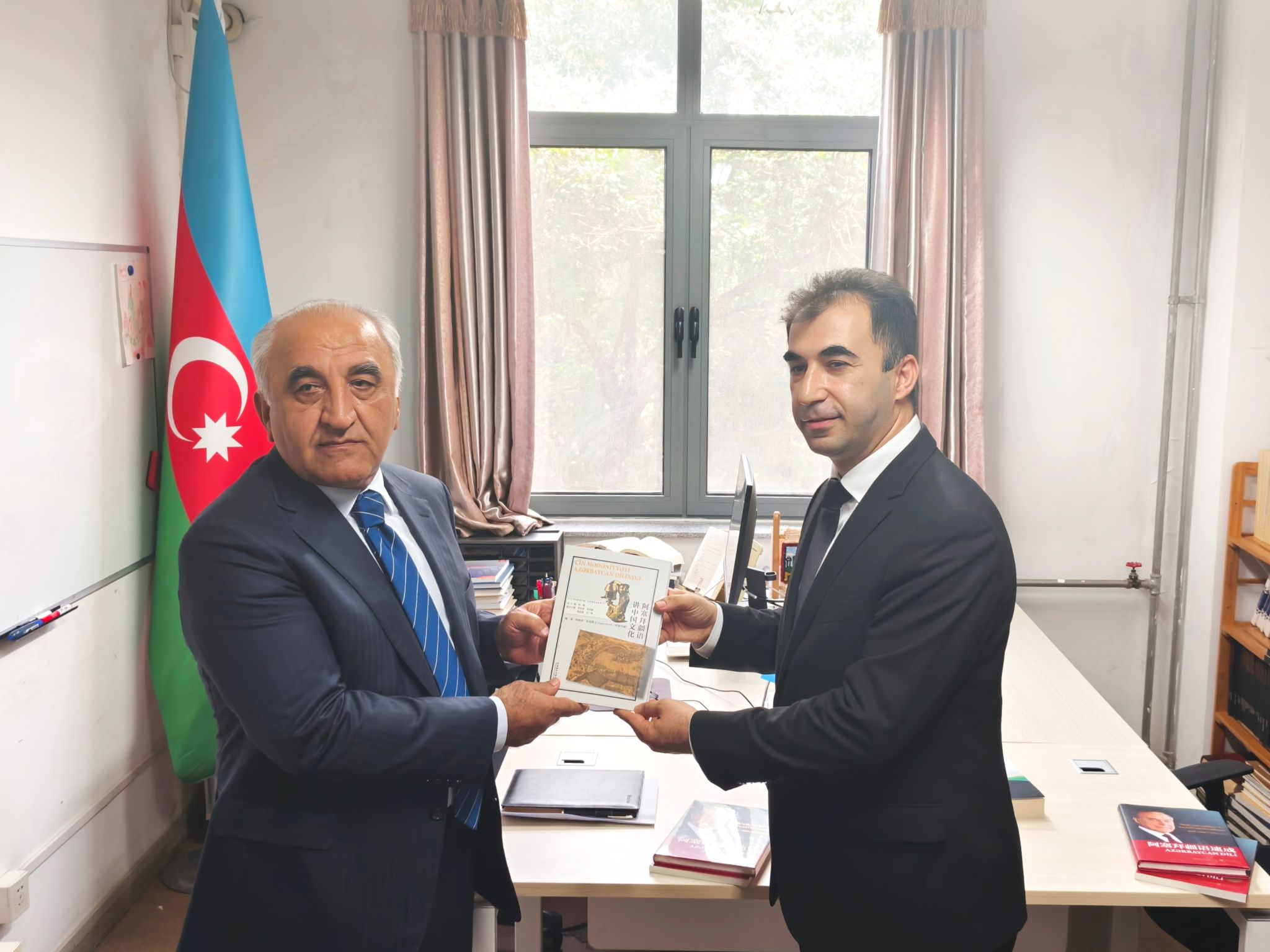 阿塞拜疆语教研室主任阿格申·阿利耶夫等参加会见。