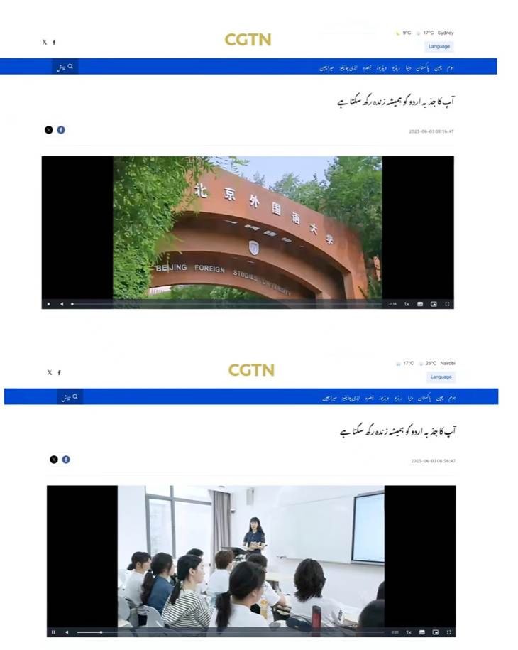 作为中国乌尔都语教育重镇的独特地位,也展现了北外在服务国家外交战略、培养高素质复合型外语人才方面的重要作用。作为中国开设乌尔都语本科专业的高等院校之一,北外为推动中巴语言文化交流、深化两国合作做出了积极贡献。本期节目视频于6月3日在CGTN乌尔都语板块官方网站及其Facebook官方账号@FM98DostiChannel同步发布。上线后,迅速获得了中巴两国网友的积极观看、点赞与互动,成为近期传播语言魅力、增进中巴情谊的又一精彩力作。