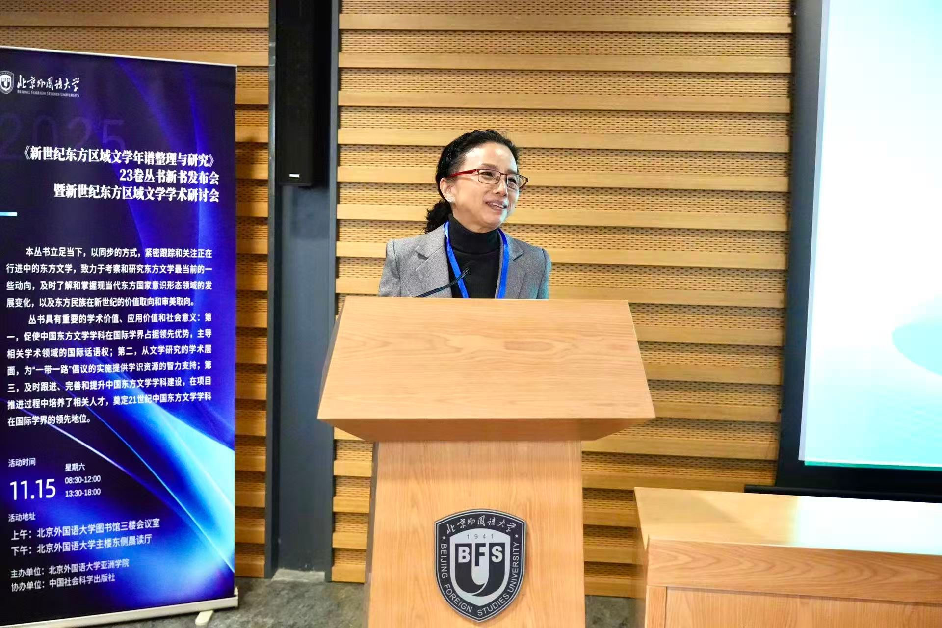 、非洲学院、教育学院、新闻传播学院等均在区域与全球治理相关方向有所建树,使学校整体成为实质上的“区域国别研究大学”。在此背景下,该丛书汇聚全国多所高校和科研机构41个亚非语种、114名学者共同参与,是国内首个以区域文学为主题的国家社科基金重大项目。它不仅彰显了北外在东方文学与区域研究领域的深厚基础,也进一步巩固了外语学科在整体区域国别研究体系中的支撑地位。