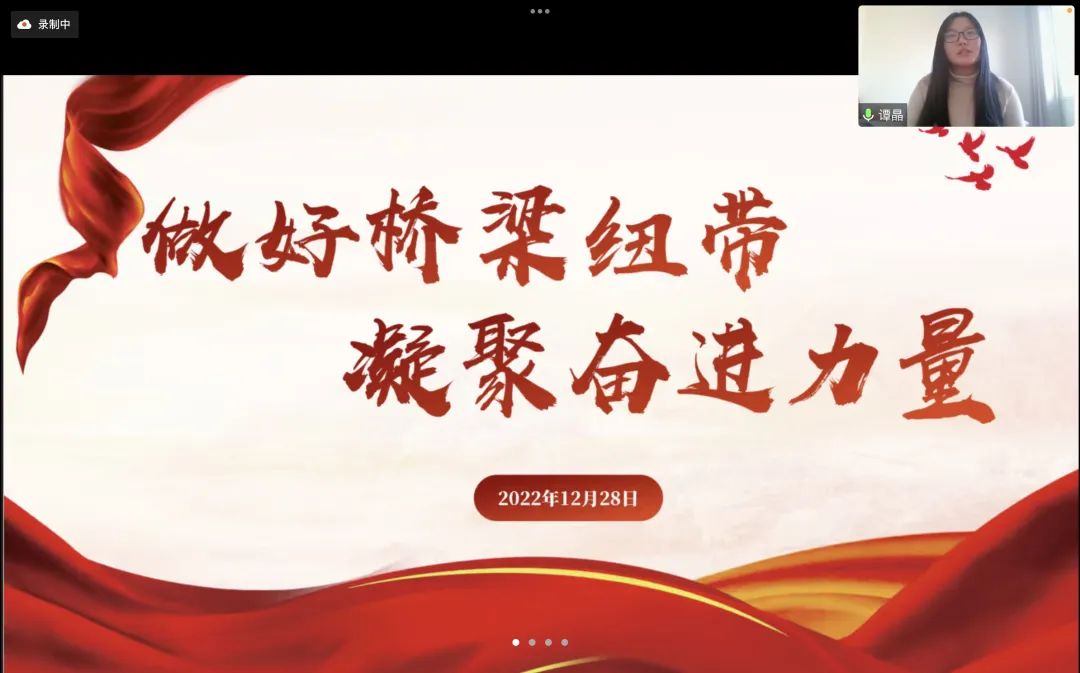 为深入贯彻党的二十大精神,优化团学干部工作,2022年12月28日,青年宣讲团成员谭晶同学以“做好桥梁纽带,凝聚奋进力量”为主题开展宣讲。国产视频