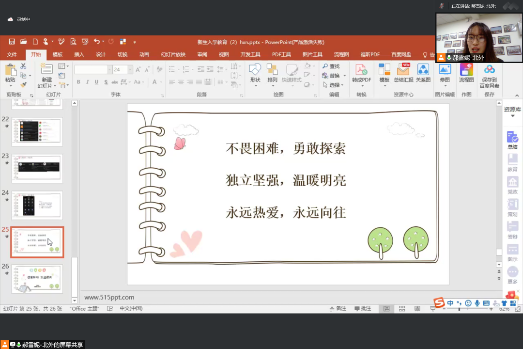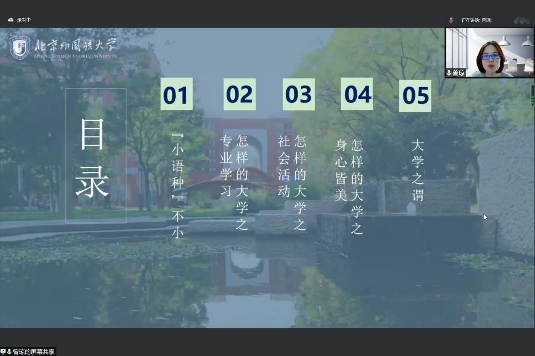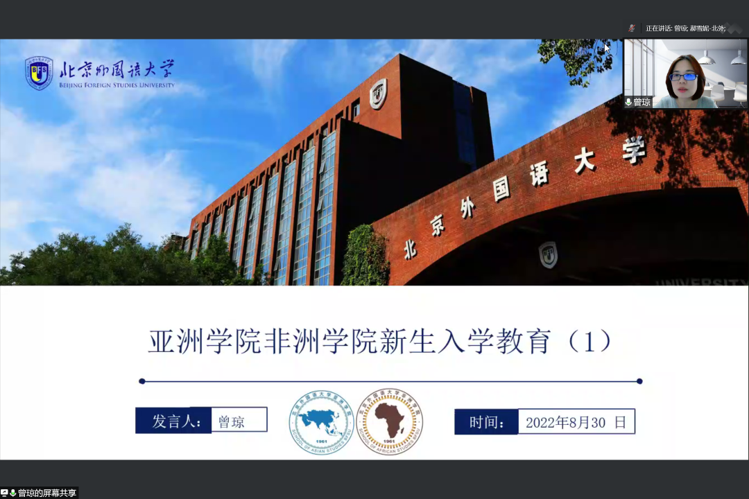 、非洲学院新生入学教育第一讲及第二讲于线上成功举办。本次系列教育讲座主讲人分别为新生班主任代表曾琼老师和辅导员郝雪妮老师。亚、非两院全体2022级新生参会学习。