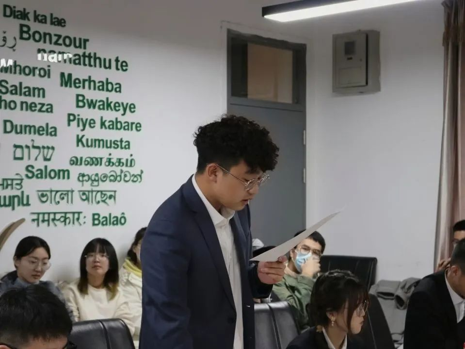 主楼344会议室如期举办。在经历近半个月的激烈角逐后,朝鲜语1班和朝鲜语2班晋级决赛。本场比赛的辩题为“当今中国,‘平替’产品的流行更是年轻人消费精致感/无奈感的体现”,朝鲜语1班“你说的都队”持正方,朝鲜语2班“对方辩手说得队”持反方。本次决赛的评委为国产视频